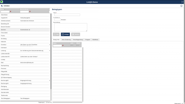 Hier können Sie LinDA Belegtypen anlegen und / oder verwalten.