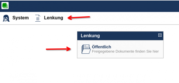 Um auf die veröffentlichten Dokumente zuzugreifen, navigieren Sie zunächst in das Menü Öffentliche Dokumente.