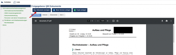 Abhängig von Ihren Rechten stehen Ihnen in der Vorschau zusätzliche Funktionen zur Verfügung, z. B. Kopie erstellen, Neue Version anlegen. Diese Funktionen sind nur verfügbar, wenn der Benutzer über die erforderlichen Rechte zur Dokumentenerstellung verfügt.