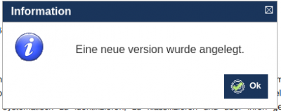 Ohne einen Kommentar kann keine neue Version erstellt werden. Nach dem Bestätigen des Kommentars erscheint ein Bestätigungs-Popup, das die erfolgreiche Erstellung der neuen Version meldet.